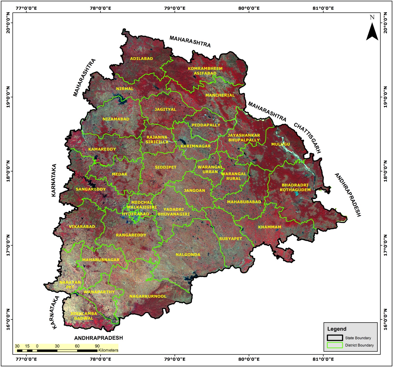 Satellite Map of Telangana